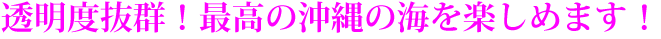 | 沖縄本島から大型クルーザーで約1時間のケラマ諸島での体験ダイビング&シュノーケルツアーです。透明度抜群!最高の海を楽しめます。運が良いとウミガメに会えることも!たっぷりと沖縄の海を楽しみたい方にお勧めのツアーです。船にはシャワー、トイレ、更衣室など完備されていますので快適にお過ごしいただけますよ! |